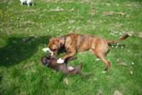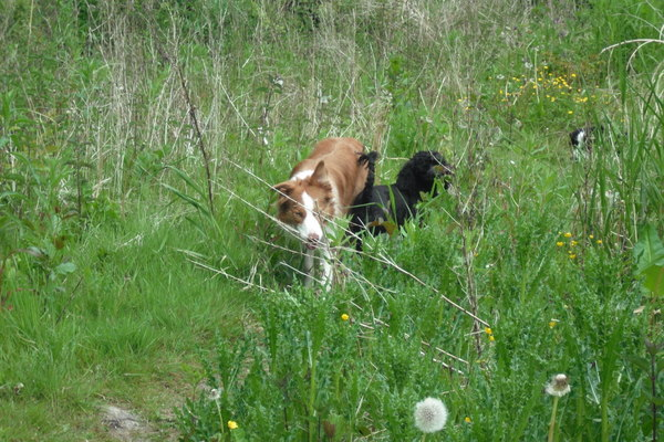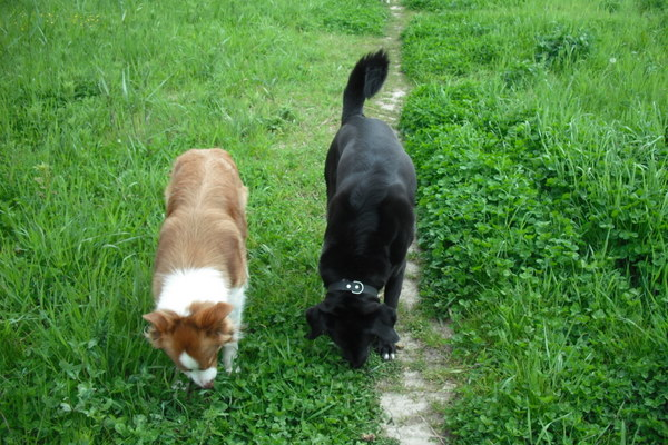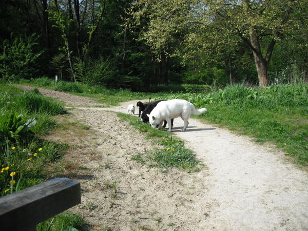 | Kijk eens allemaal! | Rollen door de bladeren | Lekker gerend jongens | Er is daar vast een lekker geurtje. |