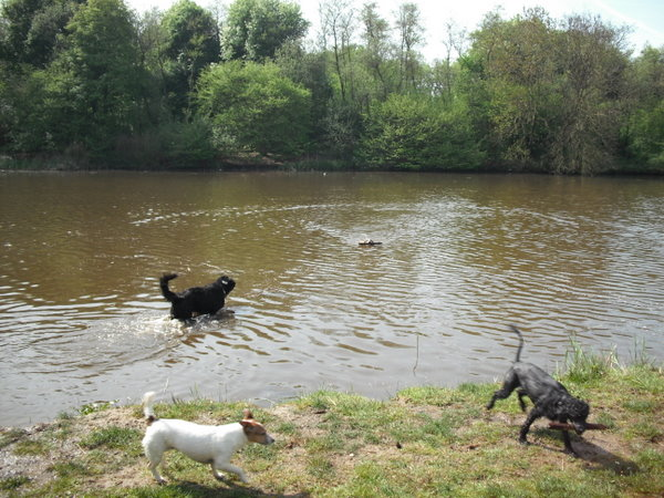 | Spetter de spat. | Is het water koud jongens? | Ik heb hem! Ik heb hem!!! | Pak de stok jongens! |